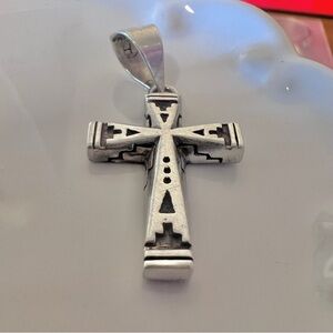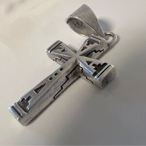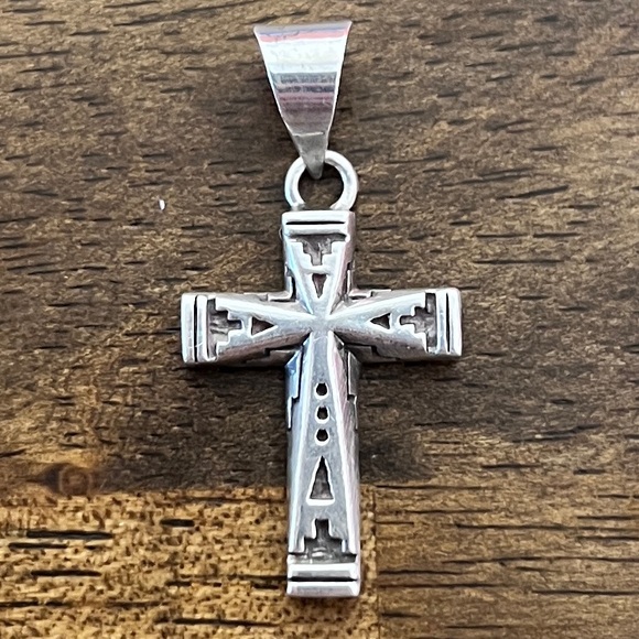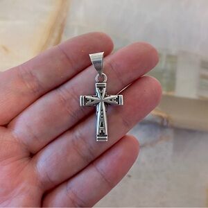 Native American Southwestern Handmade Sterling Silver 925 Cross Pendant for Necklace