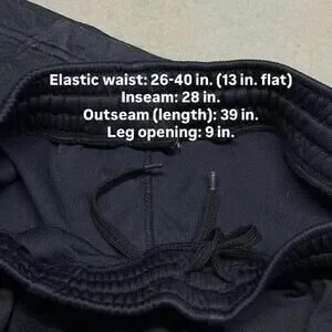 - Has pockets, an adjustable elastic waist, and drawstrings.