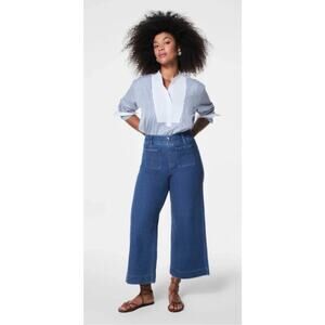 Structured stretch denim and a flattering wide-leg cropped silhouette give these jeans a polished, comfortable fit. Designed with SPANXshape support, they smooth and hold while still feeling easy to wear.