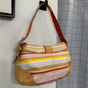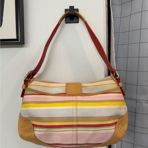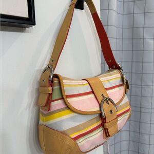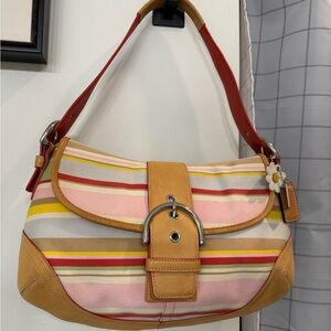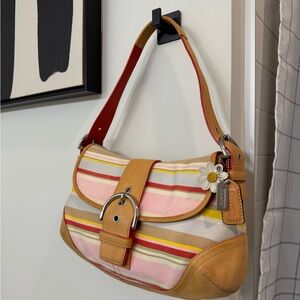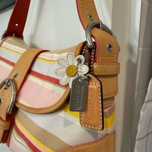 RARE! vintage (2004) coach daisy striped soho + flower bag charm