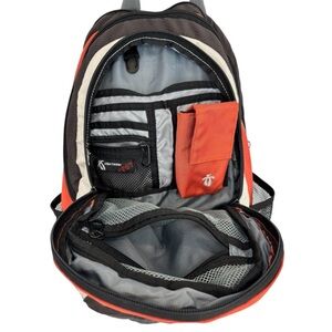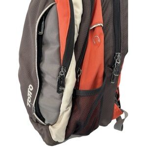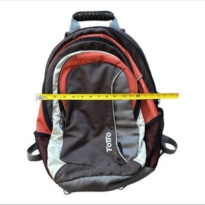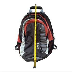 Versatile Totto unisex multi colored daypack backpack with multiple compartments. Ideal for everyday use. Backpack has a small mark on the back bottom as shown in last photo but otherwise in good condition. Backpack measures 15” Wide & 23” Tall