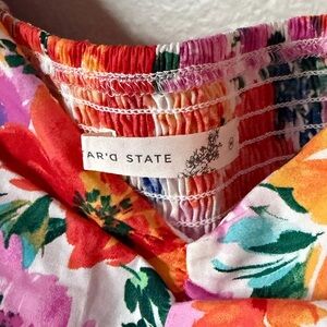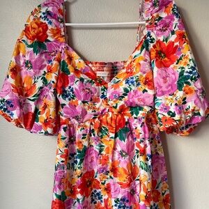 Make a statement with this bright and bold Altar'd State Cyndella mini dress. This flirty piece features an eye-catching floral print, romantic dramatic puff sleeves, and a flattering sweetheart neckline. The smocked back and princess seams provide a structured yet comfortable fit-and-flare silhouette, making it an ideal choice for any sunny-day outing.