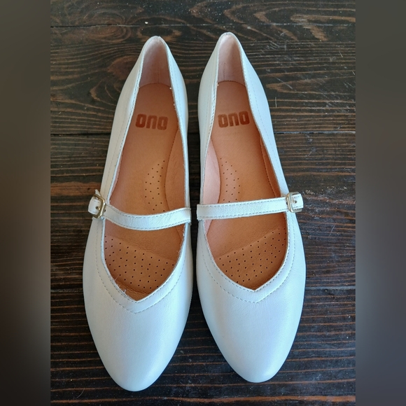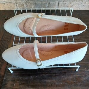 Never used! white leather Mary Jane flats. Smoke-free and pet-free home.