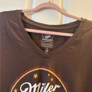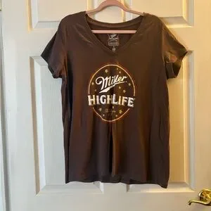 Classic women's V-neck tee in brown with branded front logo. Soft, breathable fabric for everyday wear. Casual style that pairs easily with jeans or shorts. In perfect condition. Size 1!