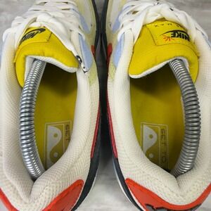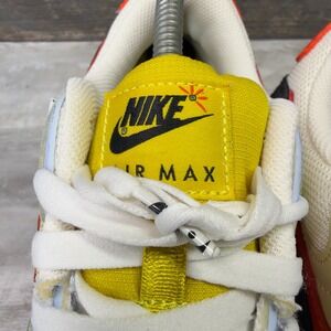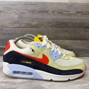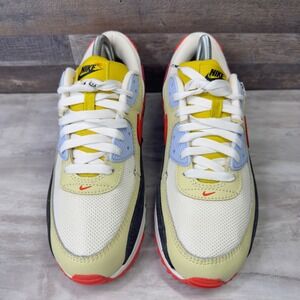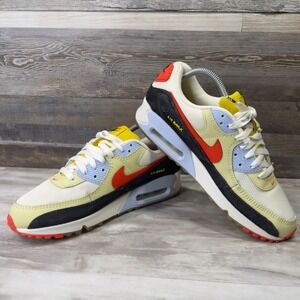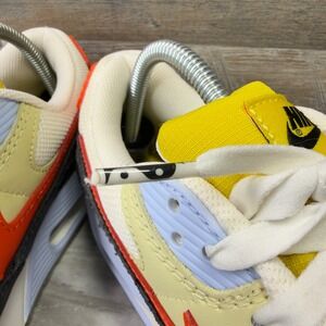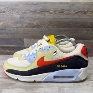 Step into a vibrant piece of sneaker history with these Nike Air Max 90 Set to Rise sneakers, featuring a unique multi-color palette of Sail, Ashen Slate, and Hemp. The design pays homage to Nike's fictional 'Moving Company' with charming details like the snail-inspired swoosh on the tongue and custom aglets. These shoes are in excellent pre-owned condition, showing only light signs of wear on the outsoles while maintaining a crisp, clean upper. Perfect for casual weekend outings, streetwear enthusiasts, or adding a pop of color to your daily commute.