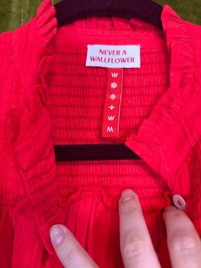 Never a Wallflower Smocked Short Dress in Strawberry Red Solid. Size M. Retail $298