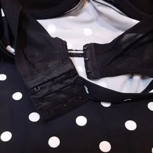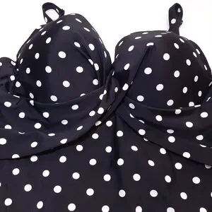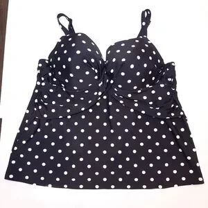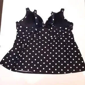 A classic polka dot print in a flattering shape. This plus-size tankini top features everything you need to feel comfortable whether you opt for a tanning session by the pool, a volleyball game on the beach or a nice dive in the water.