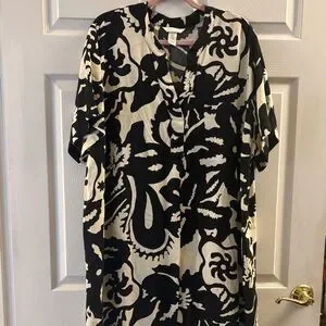 H&M women's midi dress with bold black and white print. Lightweight woven fabric. Dress is in perfect condition. Size XL