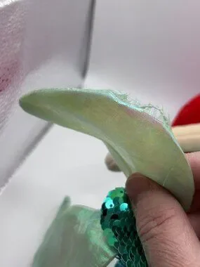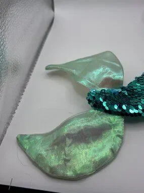 Pre owned with tags, in great condition. There is a small tear on the bottom of her fin, see photos for all angles and closeup of the threads.