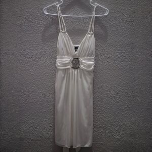💗 Love Tease White Rhinestone Empire Waist Mini Dress