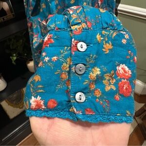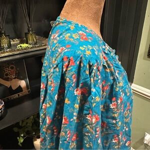 This Sundance floral blouse brings color, charm, and artisan-inspired detail to any wardrobe. Made from lightweight 100% cotton, it features a relaxed silhouette, a ruffled button‑front placket, and a vibrant floral print in blue, pink, and green tones. Breezy, comfortable, and perfect for layering through every season.
