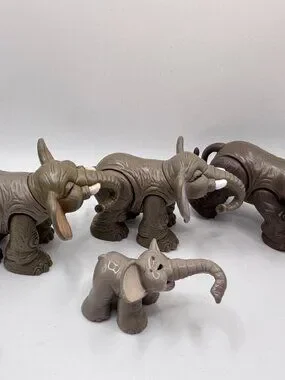 Fisher Price Elephant Animal Families Figures Lot Posable Zoo Rare full Set of 4 Vintage