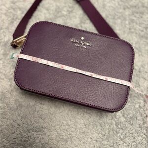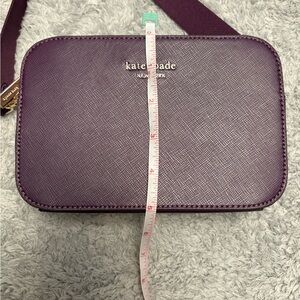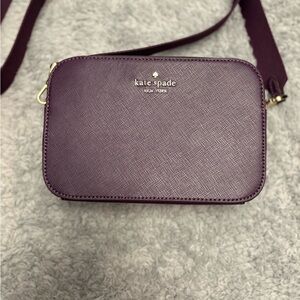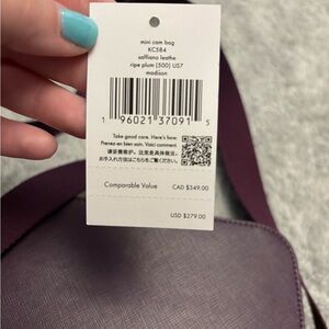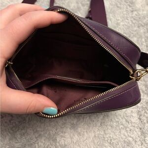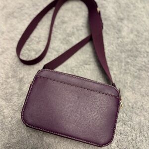 Compact saffiano leather crossbody. Gold-tone logo and zipper details. Adjustable strap for versatile wear. Clean, structured silhouette for daily essentials. In perfect condition!