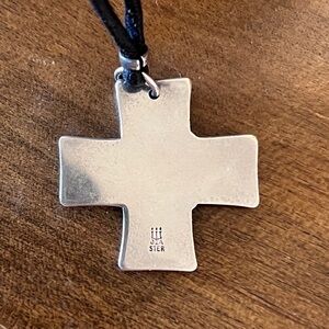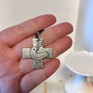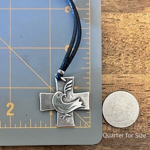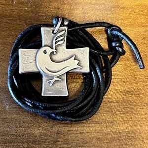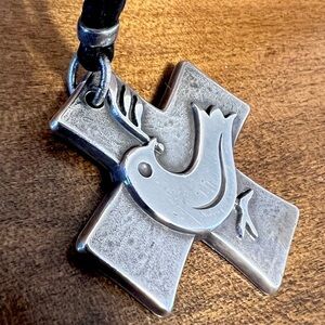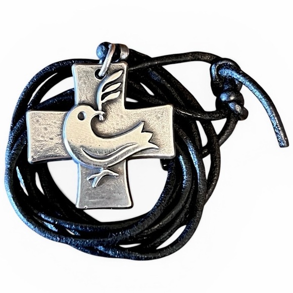 Retired James Avery Dove of Peace with Olive Branch Cross Pendant with about 30” Leather Cord Necklace