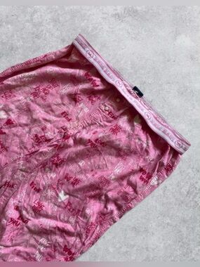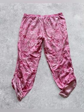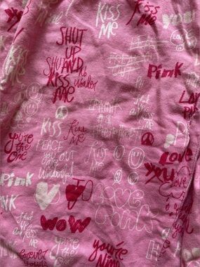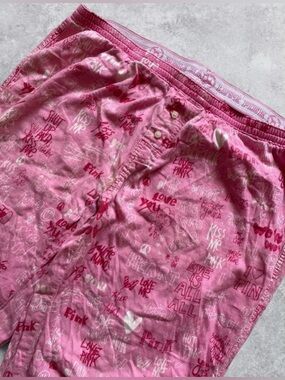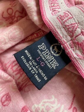 In great condition. Tagged a size large, waist measures to about 17”-18” flat. Button on leg to change length of pants from capris to full length & has a fold down LOVE PINK waist band for multiple ways to wear! 100% cotton.