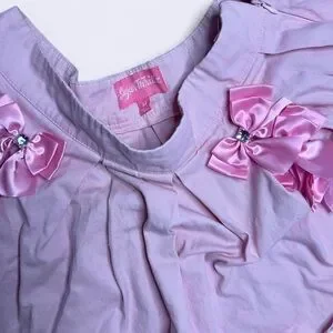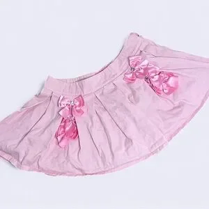 Pink Sugar Thrillz mini skirt with pleated design and satin bow details accented with rhinestone 💕 Super cute and girly, perfect for Y2K or coquette vibes.