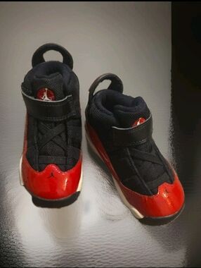 Nike Air Jordan 6 Rings Little Kids Black And Red Sneakers Sz 8C