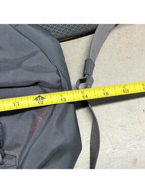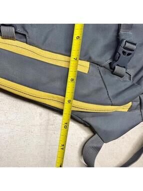 Measurements shown in the pictures. In excellent preowned condition, no flaws. Has an adjustable strap with a zip pocket, two zip pockets on the body of the bag and 8L of space.