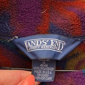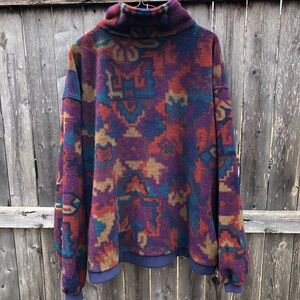 Soft plush fleece jacket with a vibrant abstract print. Full zip and classic collar. Bright multicolor blend for bold style.