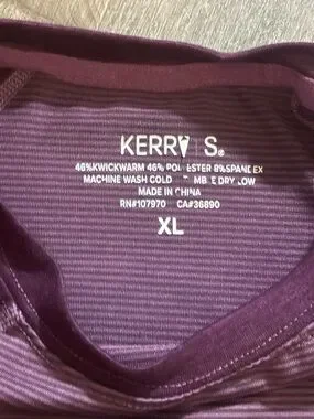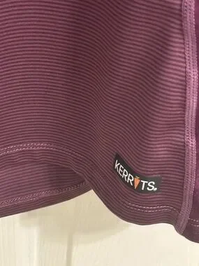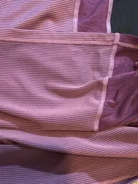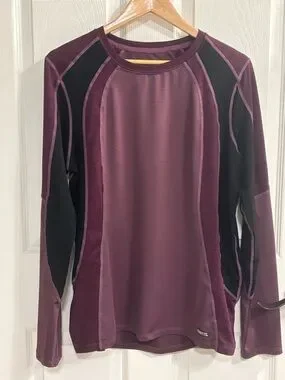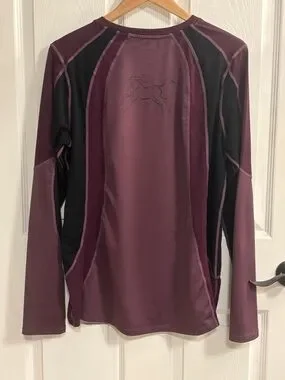 Lightweight performance fabric. Deep plum tone with subtle ribbed texture. Crew neckline and smooth seams. Ideal for layering or active wear.