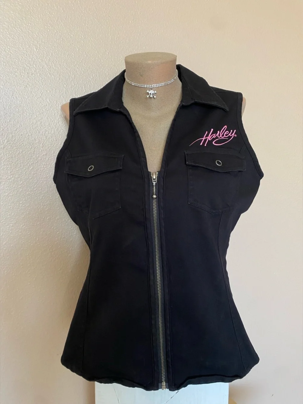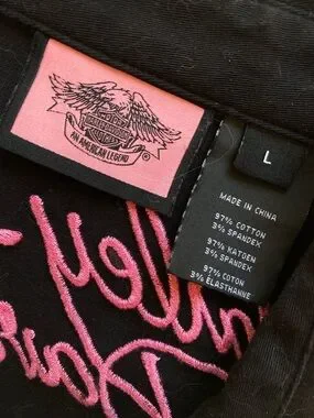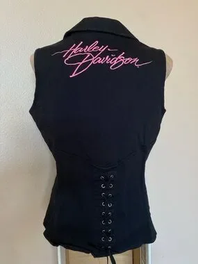 In great condition. Tagged a size large. Pit to pit measures to about 19” flat. Dated year 2011. Such a hot Harley piece!!!
