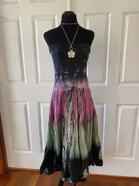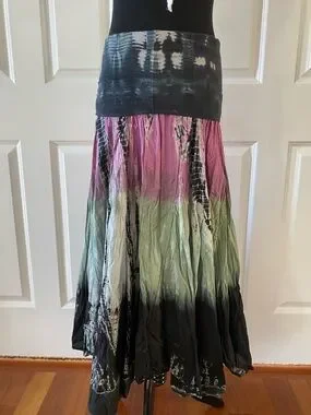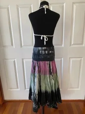In great condition. Tagged a size small. Measurements: waist- about 13”-15” flat, length- about 34”. Can be worn as a foldover maxi skirt or a strapless dress; making style possibilities endless!