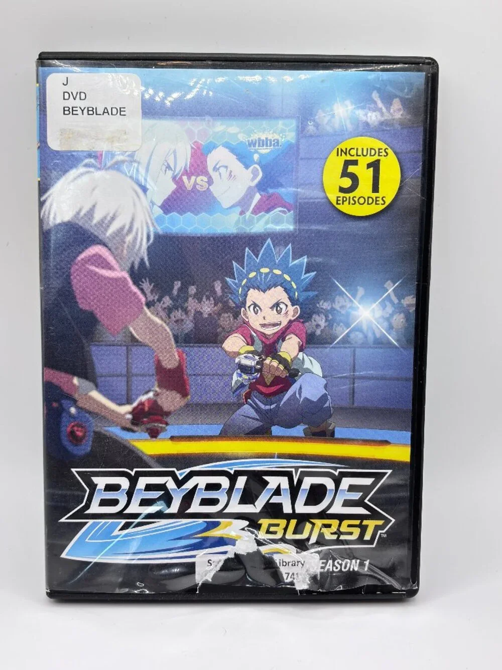 The product is a DVD box set of "Beyblade Burst: Season 1 (Evolution)" which includes all episodes from the first season of the popular animated series.