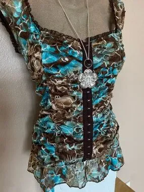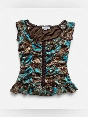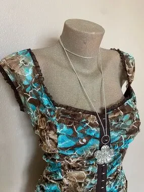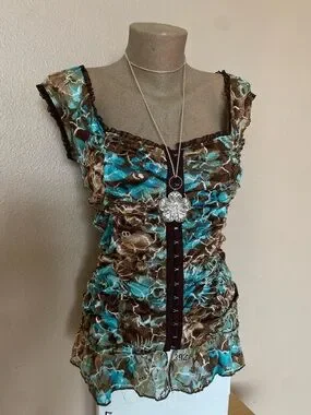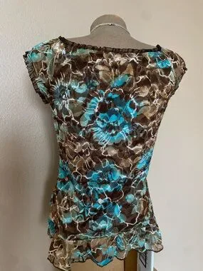 In great condition. Tagged a size medium, pit to pit measures to about 16”-17” flat. So pretty for spring & summer! Vintage, paper tag, made in USA.