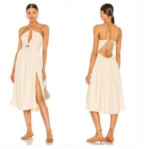 Make a statement with this stunning LPA Adalia dress! In a beautiful cream color, this halter dress features an open back design that's sure to turn heads. Perfect for a night out or special occasion.