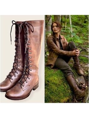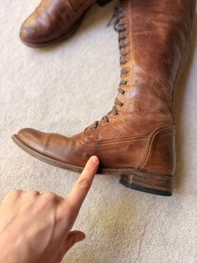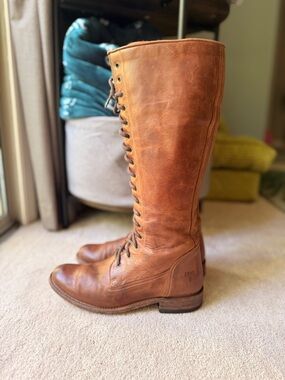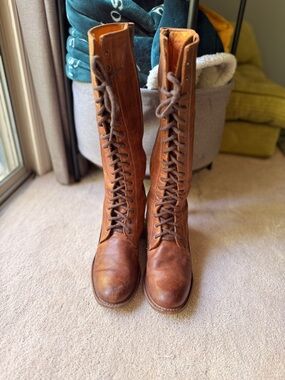 Frye Tall Melissa Lace-Up Brown Leather Campus Riding Boots Vintage 7