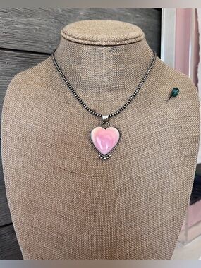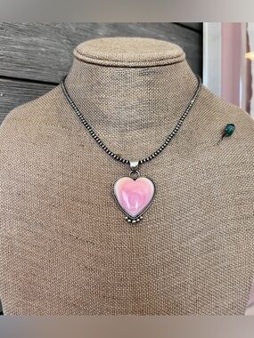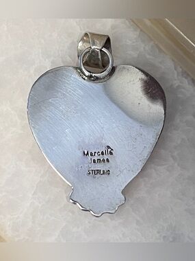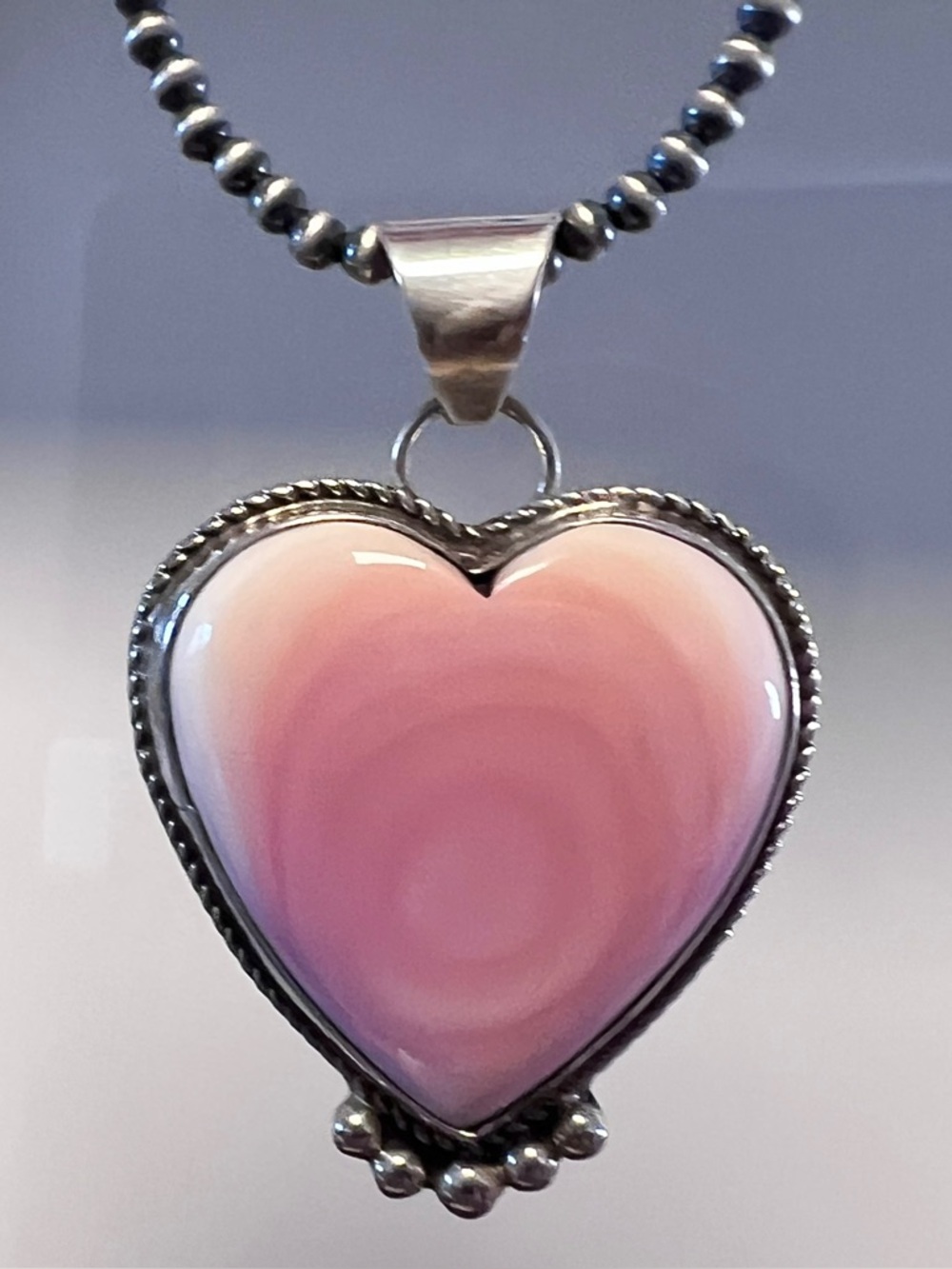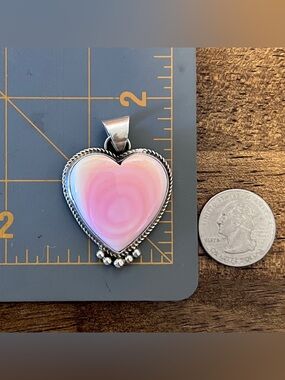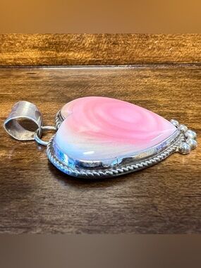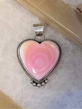 Beautiful Native American high quality Pink Conch Heart Pendant Signed Marcella James (Navajo) Sterling