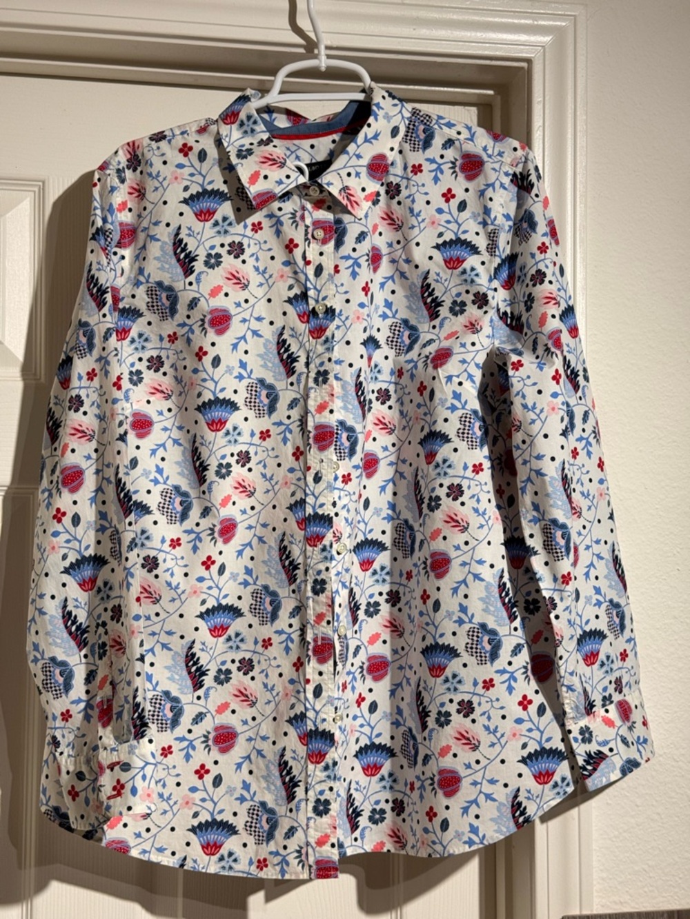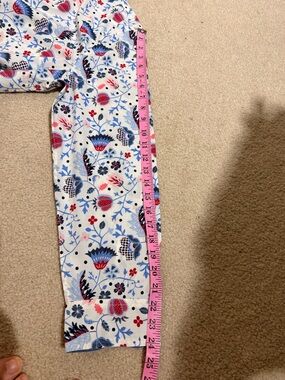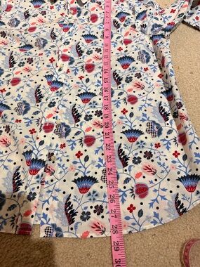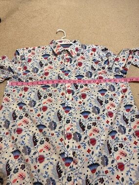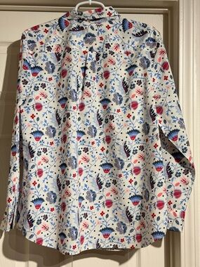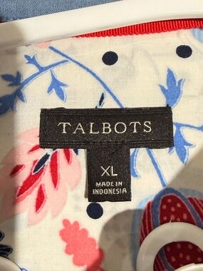 Talbots button-up top in a white base. Floral print in red, blue, and pink. Classic collar and button front. Soft, feminine design for everyday wear. Excellent condition like new. Dont think i ever wore it.