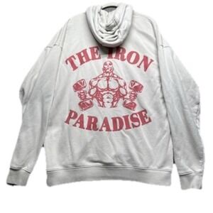 🪵 Beige fleece hoodie with red Iron Paradise graphic