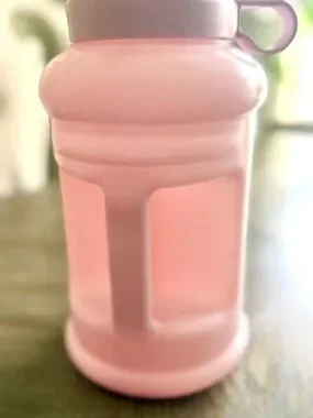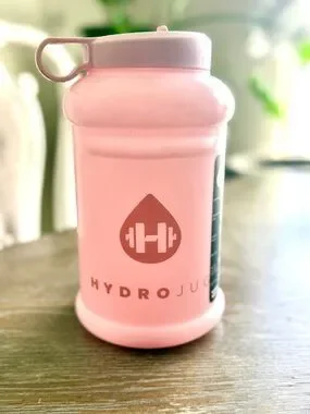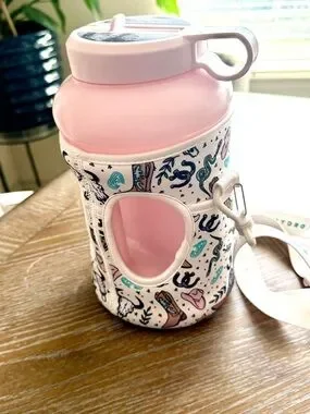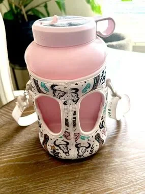 Pink HydroJug bottle with a white neoprene sleeve. Sleeve shows western motifs in black, teal, and tan. Includes removable HydroJug strap. Lightweight and travel-ready.