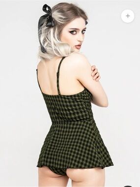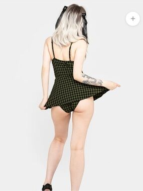 Black & green check underwired swim dress