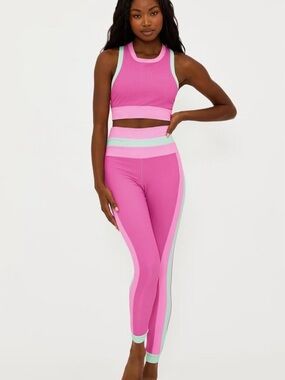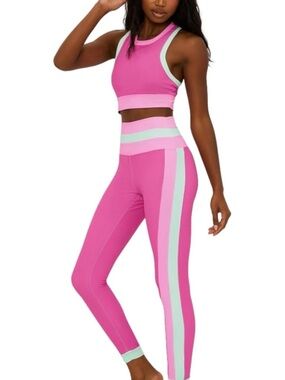 Beach Riot Melinda Leggings & Gwen Sports Bra Crop Top Pink Mint Colorblock Set XS/S