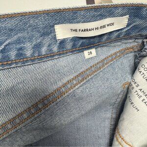 denim forum jeans, farrah hi rise wide, aritzia denim, wide leg jeans, womens size 28 jeans, high rise denim, light wash jeans, straight wide jeans, capsule wardrobe denim, minimalist jeans, vintage wash denim, modern wide leg jeans