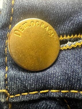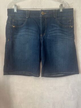 Gently used Democracy Ab Solution Bermuda jean shorts in size 14—super flattering and comfortable with built-in tummy control.