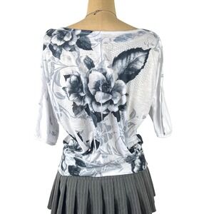 Y2K, Fairycore, Grunge, Floral Graphic, Dolman Sleeve, Boat Neck, Burnout Tee, 2000s Aesthetic, Cyber Y2K, Whimsigoth, Monochrome, Graphic Tee, Casual, Brenda's USA