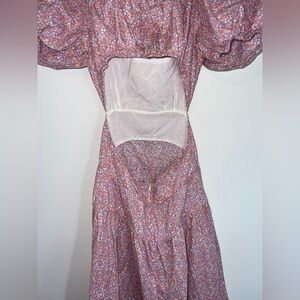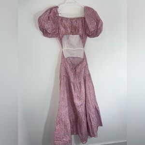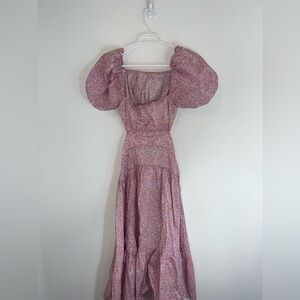 This LAIT floral maxi dress is the epitome of effortless elegance with a vintage-inspired floral print and dramatic puff sleeves. Featuring a smocked bodice, cinched waist, and a tiered skirt, this dress creates a flattering silhouette. The cutout back detail adds a modern, playful touch, making it perfect for both casual outings and special occasions.
