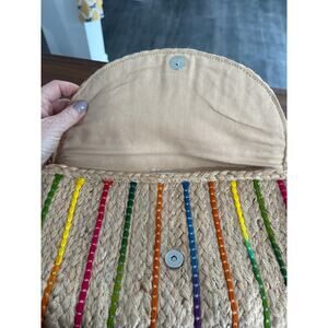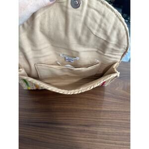 Snap closure. Lined with an inner pocket. Measures about 12.5x7.5 inches.