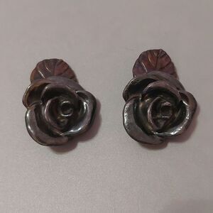 Vintage Sterling Silver Oversize 3D Flower Leaf Clip On Earrings Bold Runway 26 grams