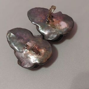 SOLD 925 Sterling Silver Oversize 3D Flower Leaf Clip On Earrings Bold Runway