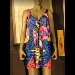 ASOS Graphic Print Eyelet Mini Dress. Dress by ASOS Collection. Printed woven fabric. V-neck, front and back. Lace-up front detail. Relaxed fit. Worn once. 100% polyester. Feels like silk. Looks like satin. EUC. Like brand new. Very bright. Very cute. Very comfortable.