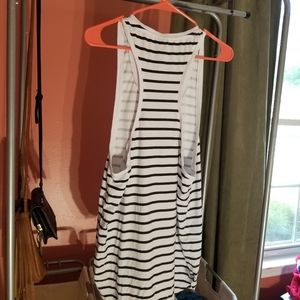 Striped racerback tank top, slightly longer in back than front.