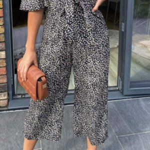 SOLD AX Paris_ WOMEN'S BLACK AZTEC Front Tie JUMPSUIT SZ 8