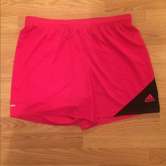 Adidas workout shorts. Hot pink and black. Never worn. About a 4" inseam.