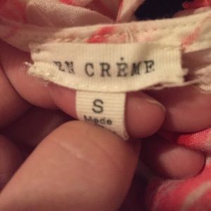 Great condition sleeveless white and coral tie dye dress size small. With Strappy back, brand is en creme. No defects. Please contact me before leaving neutral/negative feedback. I'm willing to do whatever it takes to resolve any issues if they come up. I check the items closely & state any flaws in the description. Thanks for looking!!