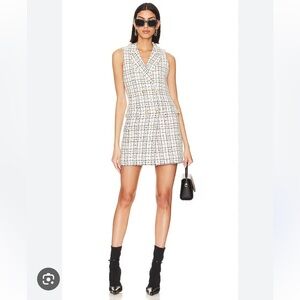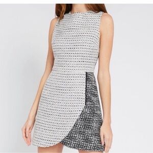 Gorgeous Alice + Olivia Bentley mini dress with black and white geometric knit pattern. Pairs beautifully with a blazer and heels! 100% wool. Bust 34", waist 32", hip 36", length 36". EUC with no rips, stains or tears.