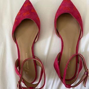 SOLD Anthropologie size 7 Pointed Toe Embroidered Bow Ballet Flats